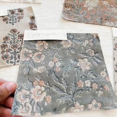Bagh - Natural - Blue Grey, Rose Textile Swatch