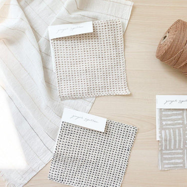 Handwoven in a colorful, riverside village in India, by a collective of 50 women weavers, every yard takes 3 days to weave, made from start-to-finish in a fair-trade environment.