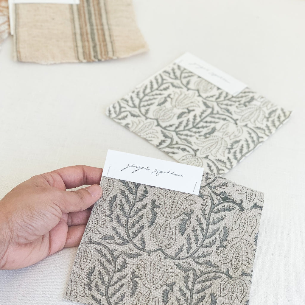 Featuring a delicate floral pattern hand-block printed using traditional printing techniques, we love the soft color and texture that gives this fabric so much character. Made using incredibly soft linen, it is a bit of modern, a bit of boho, and loads of warmth. We’re dreaming of these for farmhouse style spaces filled with light and greenery.