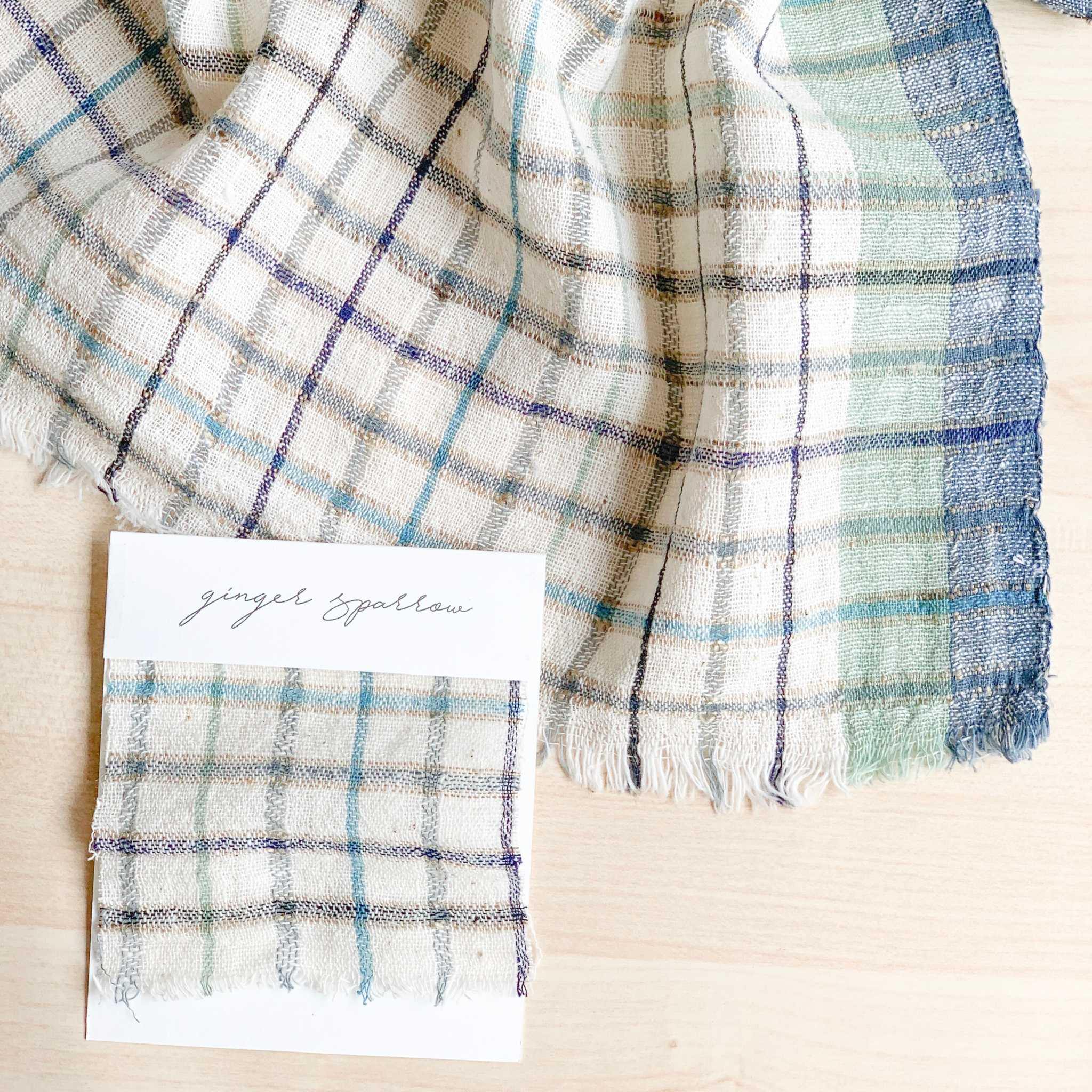Light green and indigo checkered weave woven onto a natural ivory ground. Crafted on a traditional wooden loom, we love the delicate handwoven texture that gives this fabric character. Made using incredibly soft cotton, it is a bit of modern, a bit of boho and loads of warmth. We’re dreaming of these for farmhouse style spaces filled with light and greenery.