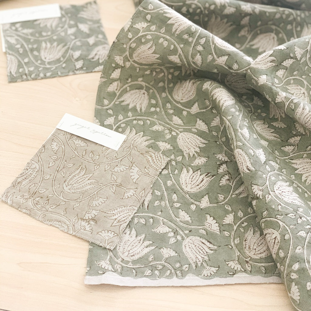Featuring a delicate floral pattern hand block printed using traditional printing techniques, we love the soft color and texture that gives this fabric so much character. Made using incredibly soft linen, it is a bit of modern, a bit of boho, and loads of warmth. We’re dreaming of these for farmhouse-style spaces filled with light and greenery.