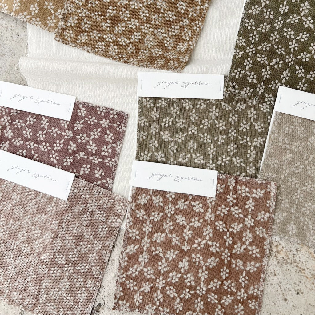 Featuring a delicate geometric motif pattern hand block printed using traditional printing techniques, we love the soft color and texture that gives this fabric so much character. Made using incredibly soft linen, it is a bit of modern, a bit of boho, and loads of warmth. We’re dreaming of these for farmhouse-style spaces filled with light and greenery.