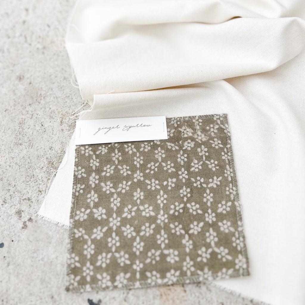 HAND BLOCK PRINTED, NATURAL LINEN TEXTILE