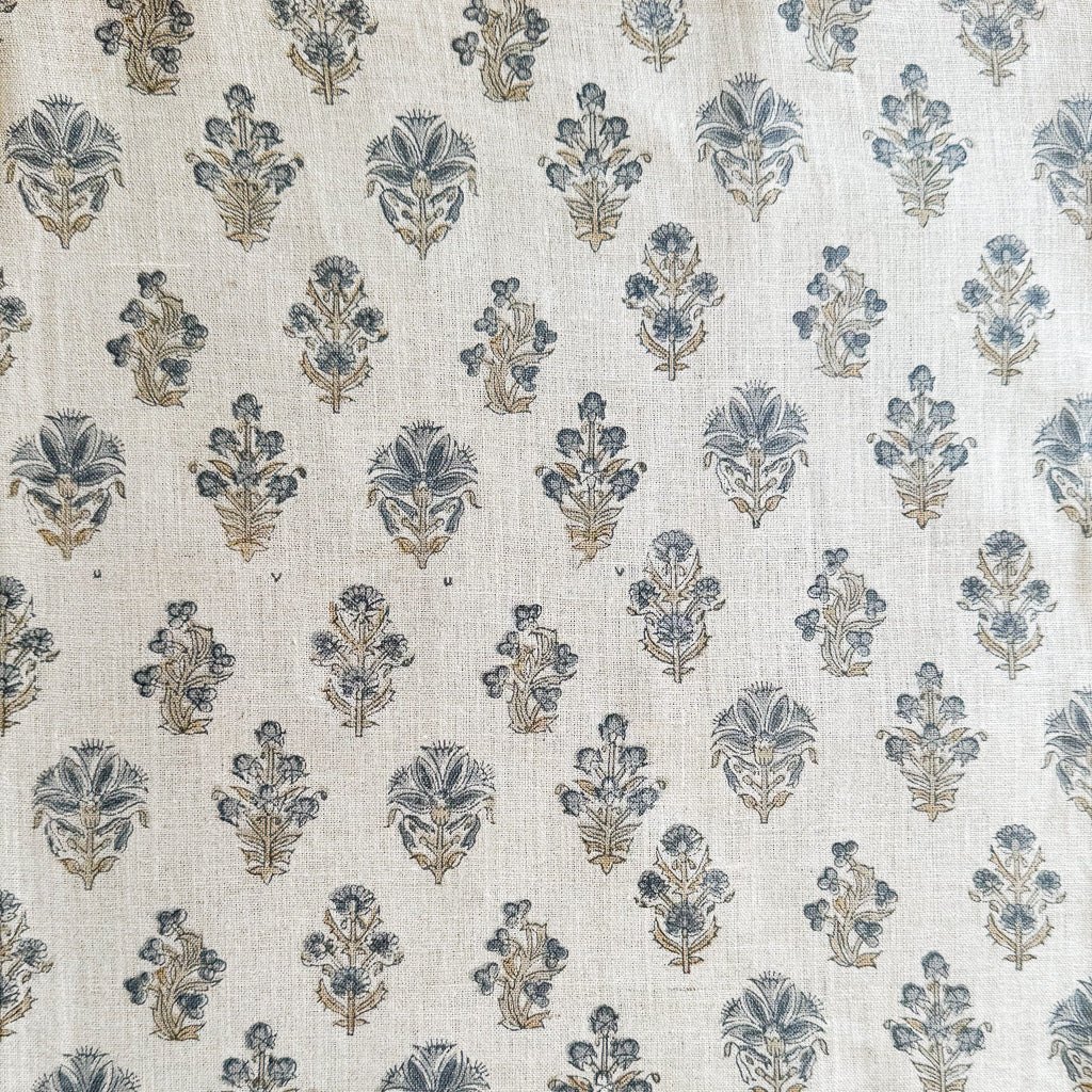 HAND BLOCK PRINTED, NATURAL LINEN TEXTILE