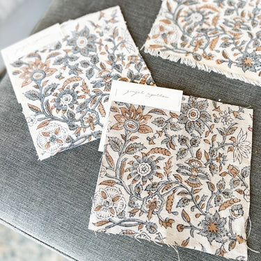 Featuring a delicate floral motif pattern hand block printed using traditional printing techniques, we love the soft color and texture that gives this fabric so much character. Made using incredibly soft linen, it is a bit of modern, a bit of boho, and loads of warmth. We’re dreaming of these for farmhouse-style spaces filled with light and greenery.