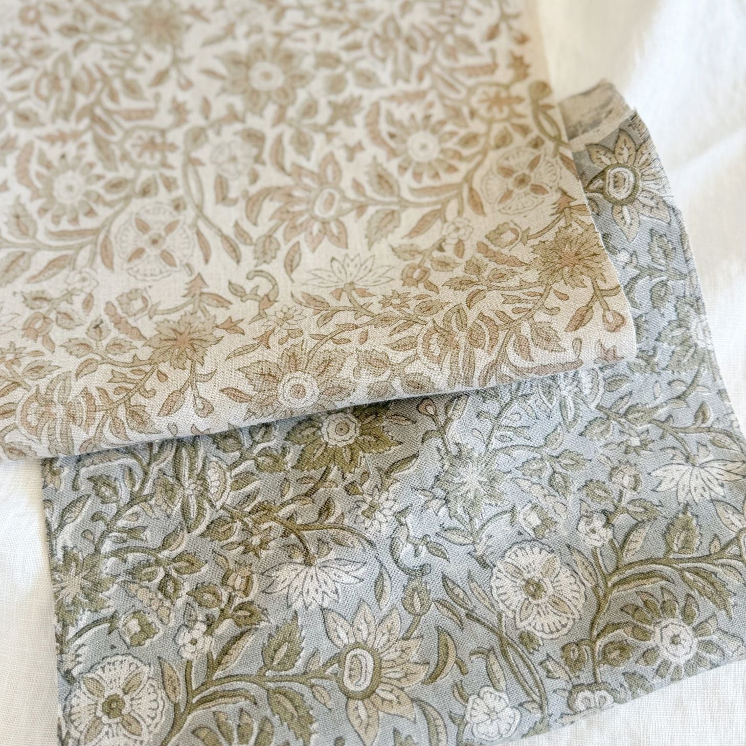 HAND BLOCK PRINTED, NATURAL LINEN TEXTILE