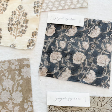 Featuring a delicate floral motif pattern hand block printed using traditional printing techniques, we love the soft color and texture that gives this fabric so much character. Made using incredibly soft linen, it is a bit of modern, a bit of boho, and loads of warmth. We’re dreaming of these for farmhouse-style spaces filled with light and greenery.