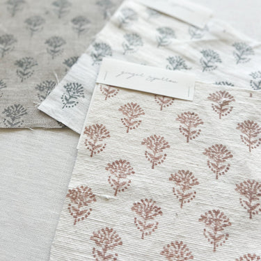 Featuring a delicate floral motif hand block printed using traditional printing techniques, we love the soft color and texture that gives this fabric so much character. Made using incredibly soft linen, it is a bit of modern, a bit of boho, and loads of warmth. We’re dreaming of these for farmhouse-style spaces filled with light and greenery.