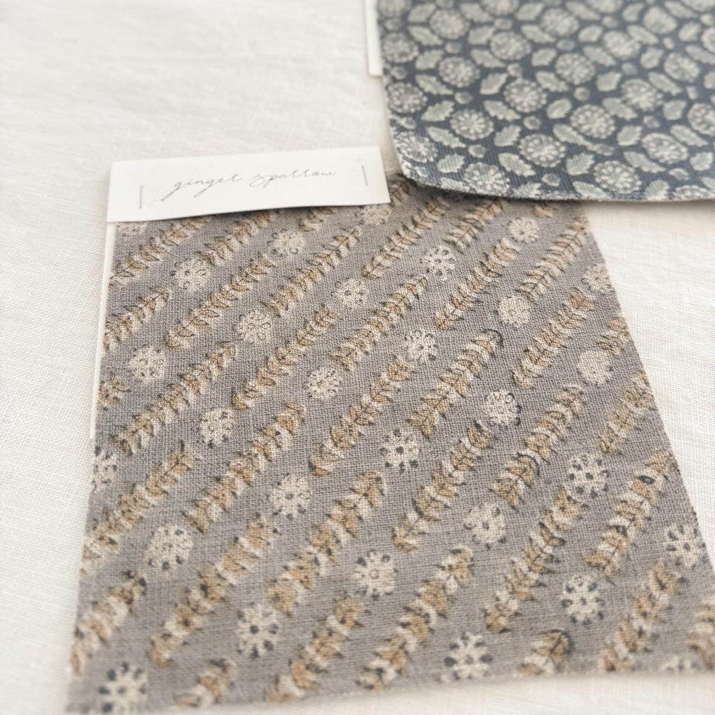 HAND BLOCK PRINTED, NATURAL LINEN TEXTILE