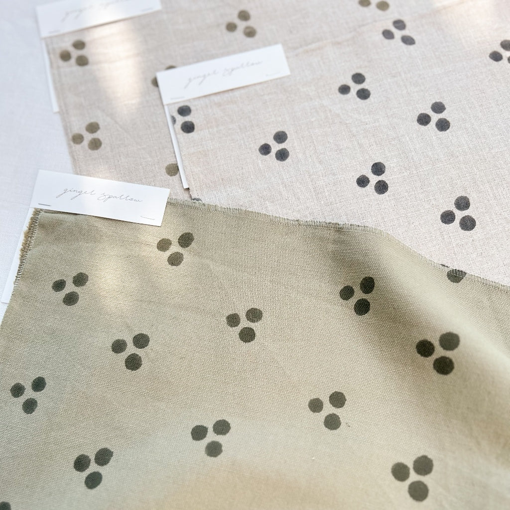 Featuring a delicate geometric motif pattern hand block printed using traditional printing techniques, we love the soft color and texture that gives this fabric so much character. Made using incredibly soft linen, it is a bit of modern, a bit of boho, and loads of warmth. We’re dreaming of these for farmhouse-style spaces filled with light and greenery.