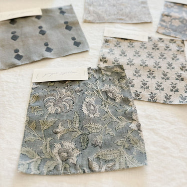 Featuring a delicate floral motif pattern hand block printed using traditional printing techniques, we love the soft color and texture that gives this fabric so much character. Made using incredibly soft linen, it is a bit of modern, a bit of boho, and loads of warmth. We’re dreaming of these for farmhouse-style spaces filled with light and greenery.