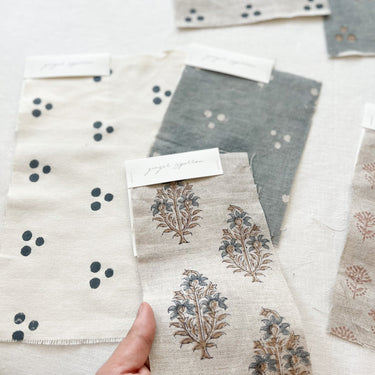 Featuring a delicate floral motif pattern hand block printed using traditional printing techniques, we love the soft color and texture that gives this fabric so much character. Made using incredibly soft linen, it is a bit of modern, a bit of boho, and loads of warmth. We’re dreaming of these for farmhouse-style spaces filled with light and greenery.