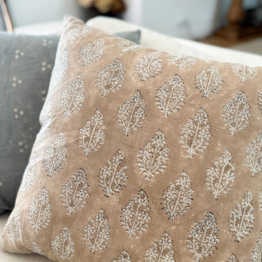 Featuring a delicate floral motif pattern hand block printed using traditional printing techniques, we love the soft color and texture that gives this fabric so much character. Made using incredibly soft linen, it is a bit of modern, a bit of boho, and loads of warmth. We’re dreaming of these for farmhouse-style spaces filled with light and greenery.