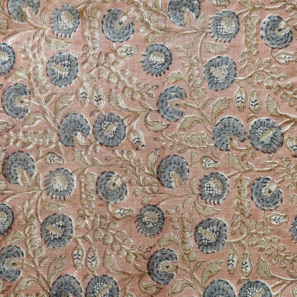 HAND BLOCK PRINTED, NATURAL LINEN TEXTILE