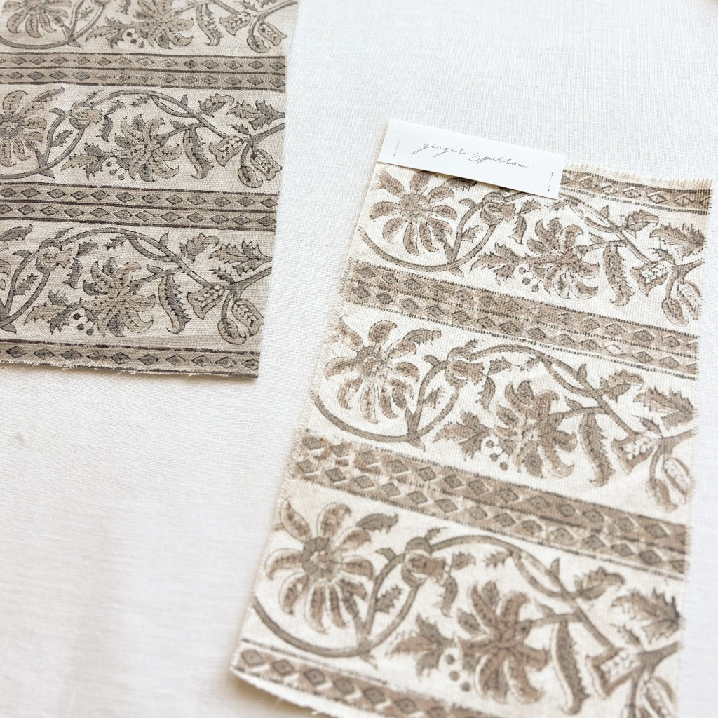 HAND BLOCK PRINTED, TEXTURED LINEN TEXTILE