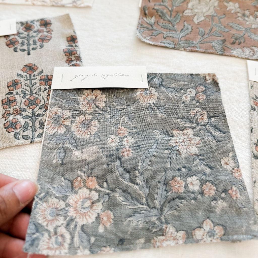 Featuring a delicate floral pattern hand block printed using traditional printing techniques, we love the soft color and texture that gives this fabric so much character. Made using incredibly soft linen, it is a bit of modern, a bit of boho, and loads of warmth. We’re dreaming of these for farmhouse-style spaces filled with light and greenery.