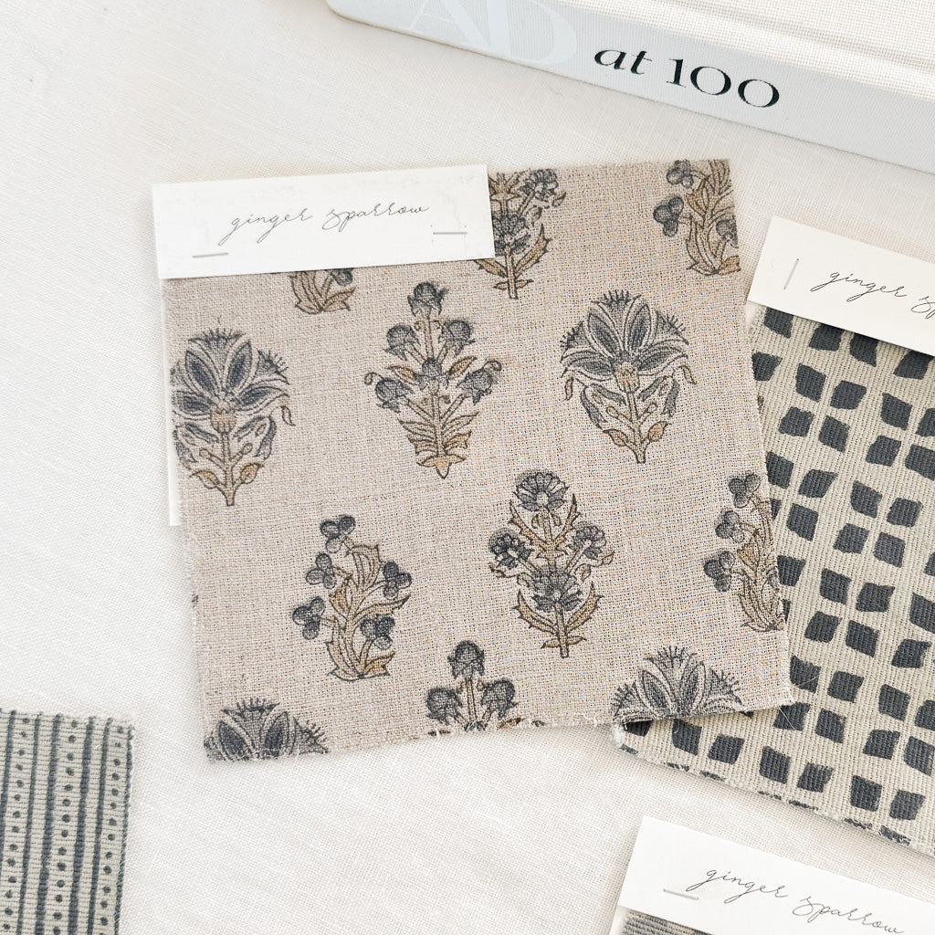 Featuring a delicate floral motif pattern hand block printed using traditional printing techniques, we love the soft color and texture that gives this fabric so much character. Made using incredibly soft linen, it is a bit of modern, a bit of boho, and loads of warmth. We’re dreaming of these for farmhouse-style spaces filled with light and greenery.