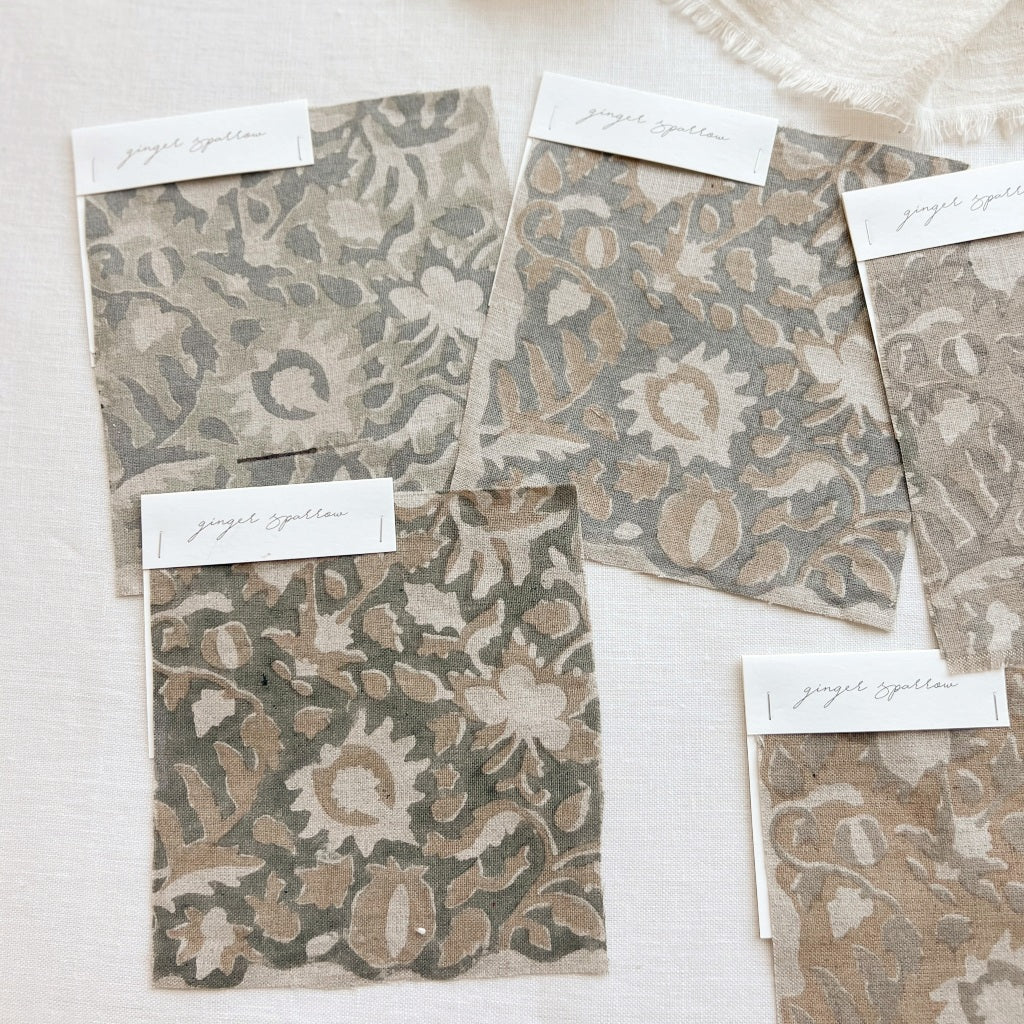 Featuring a delicate floral pattern hand block printed using traditional printing techniques, we love the soft color and texture that gives this fabric so much character. Made using incredibly soft linen, it is a bit of modern, a bit of boho, and loads of warmth. We’re dreaming of these for farmhouse-style spaces filled with light and greenery.