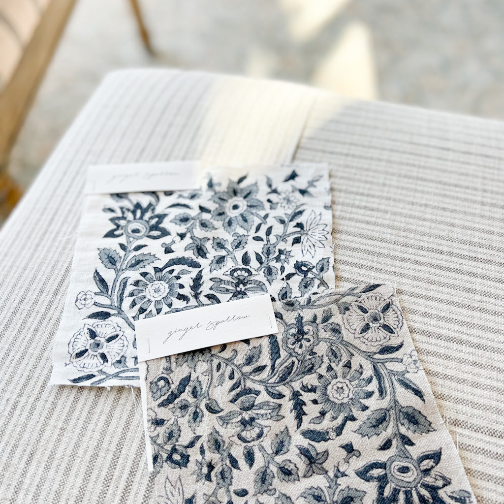 Featuring a delicate floral motif pattern hand block printed using traditional printing techniques, we love the soft color and texture that gives this fabric so much character. Made using incredibly soft linen, it is a bit of modern, a bit of boho, and loads of warmth. We’re dreaming of these for farmhouse-style spaces filled with light and greenery.