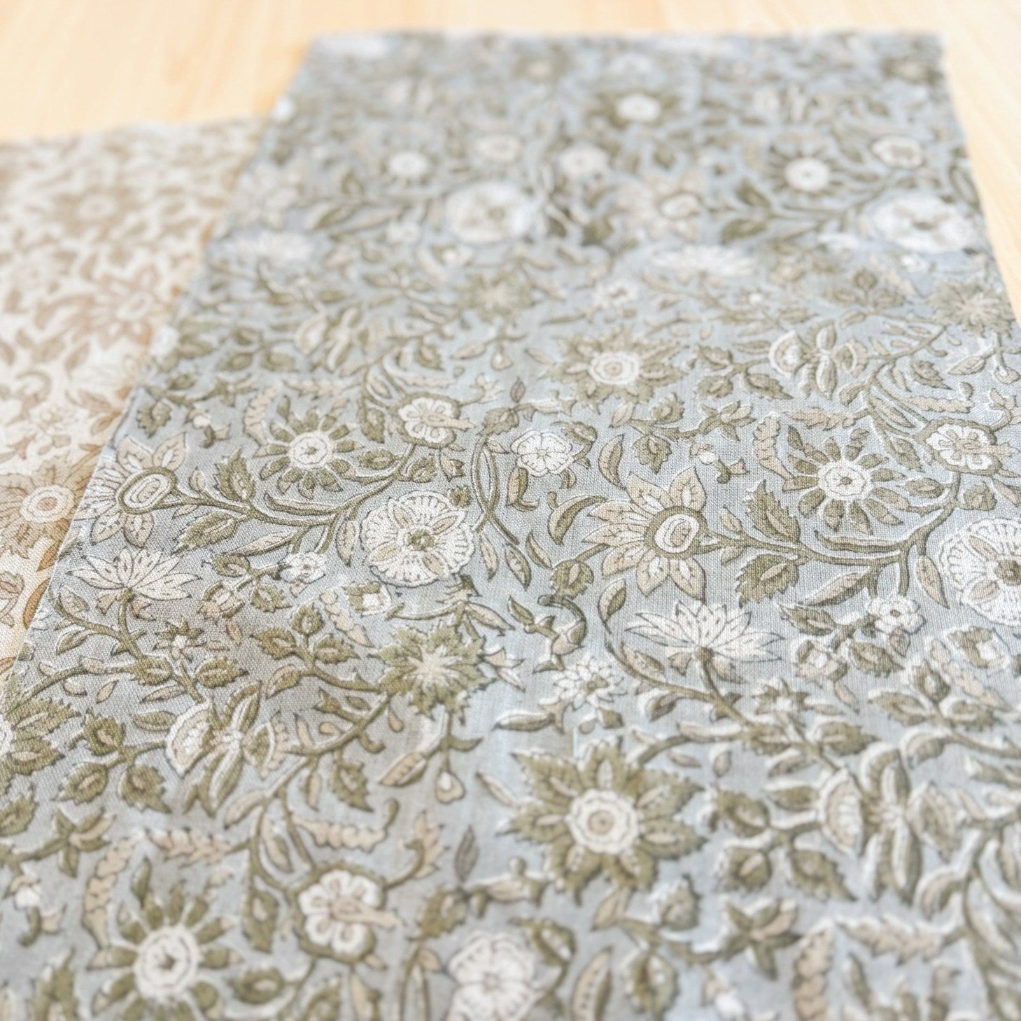 Featuring a delicate floral motif pattern hand block printed using traditional printing techniques, we love the soft color and texture that gives this fabric so much character. Made using incredibly soft linen, it is a bit of modern, a bit of boho, and loads of warmth. We’re dreaming of these for farmhouse-style spaces filled with light and greenery.