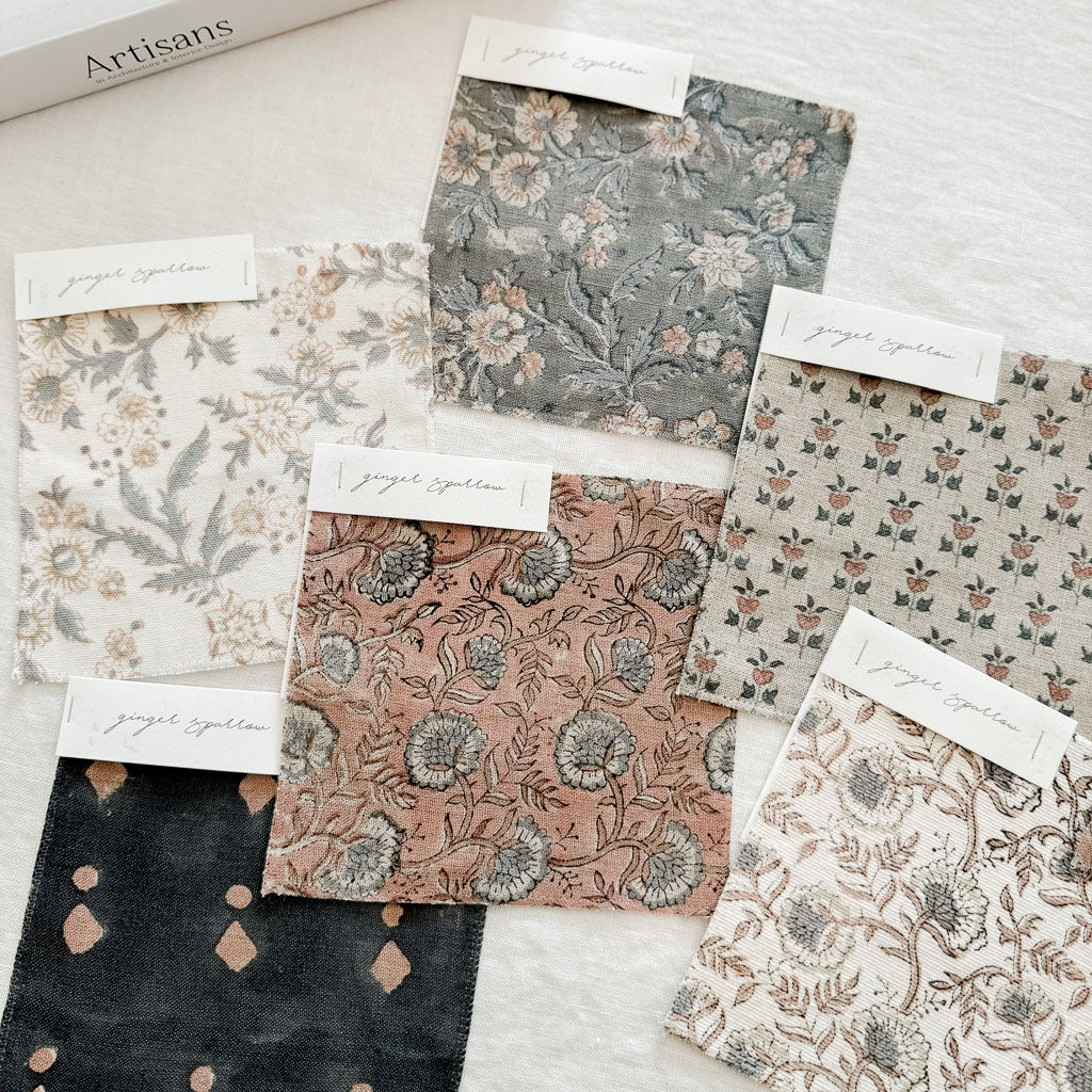 Featuring a delicate floral motif pattern hand block printed using traditional printing techniques, we love the soft color and texture that gives this fabric so much character. Made using incredibly soft linen, it is a bit of modern, a bit of boho, and loads of warmth. We’re dreaming of these for farmhouse-style spaces filled with light and greenery.