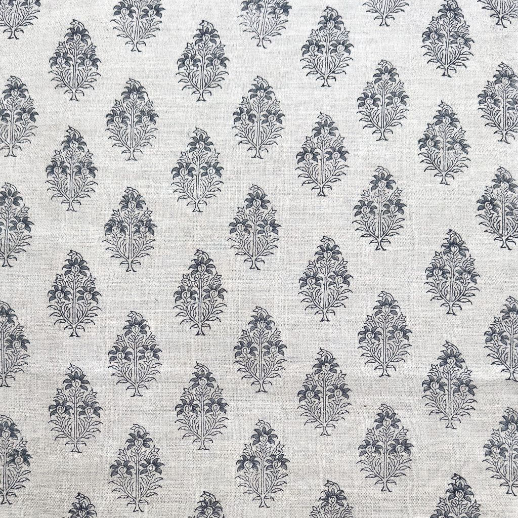 HAND BLOCK PRINTED, NATURAL LINEN TEXTILE