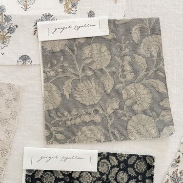 Featuring a delicate floral motif pattern hand block printed using traditional printing techniques, we love the soft color and texture that gives this fabric so much character. Made using incredibly soft linen, it is a bit of modern, a bit of boho, and loads of warmth. We’re dreaming of these for farmhouse style spaces filled with light and greenery.