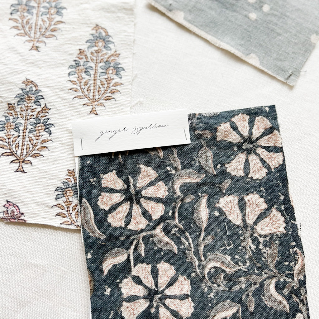 Featuring a delicate floral motif pattern hand block printed using traditional printing techniques, we love the soft color and texture that gives this fabric so much character. Made using incredibly soft linen, it is a bit of modern, a bit of boho, and loads of warmth. We’re dreaming of these for farmhouse-style spaces filled with light and greenery.