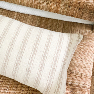 Featuring a creamy ivory cotton yard hand-crafted on a traditional wooden loom, we love the delicate texture that gives this fabric character. Made using all natural cotton with a brown stripe, it is a bit of modern, a bit of boho and loads of warmth. We’re dreaming of these for farmhouse style spaces filled with light and greenery.