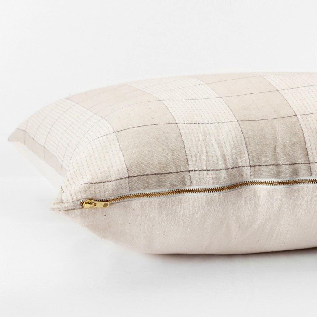 Handwoven in a colorful, riverside town in India, by a collective of 50 hand-loom weavers, each pillow takes 3 days to weave, made start-to-finish in a fair-trade environment.