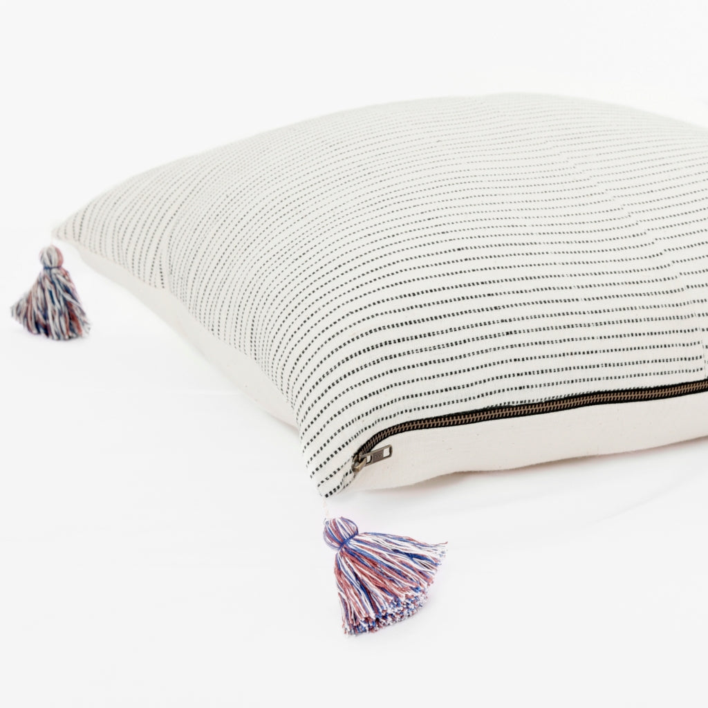 Handwoven in a quaint, riverside town in India, by a collective of 50 hand-loom weavers, each Pillow takes 3 days to complete, made start-to-finish in a fair-trade environment.