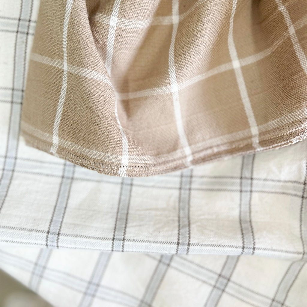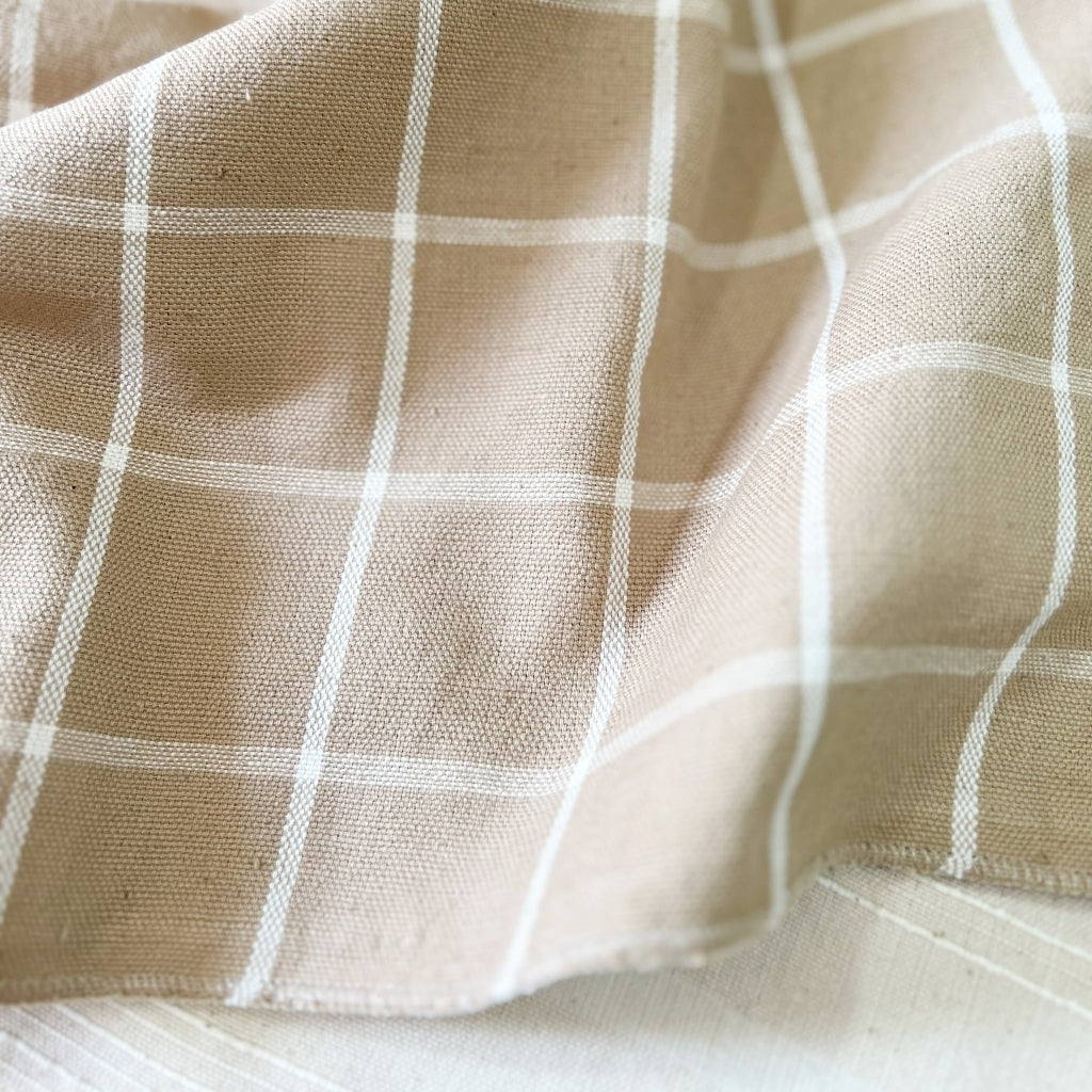 Featuring a brown and white check and crafted on a traditional wooden loom, we love the delicate handwoven texture that gives this fabric character. Made using all natural cotton, it is a bit of modern, a bit of boho and loads of warmth. We’re dreaming of these for farmhouse style spaces filled with light and greenery.