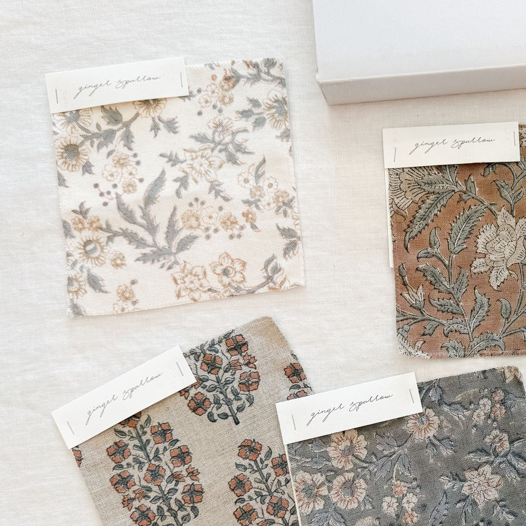 Featuring a delicate floral pattern hand block printed using traditional printing techniques, we love the soft color and texture that gives this fabric so much character. Made using incredibly soft linen, it is a bit of modern, a bit of boho, and loads of warmth. We’re dreaming of these for farmhouse-style spaces filled with light and greenery.